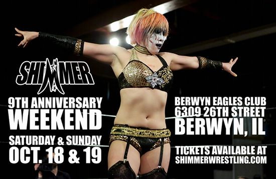 SHIMMER - WOMEN ATHLETES returns to action on Saturday & Sunday, October 18th & 19th, 2014 at the Berwyn Eagles Club (6309 26th Street) in Berwyn, IL. Volumes 67-70 of the SHIMMER series will be filmed during the course of that weekend, which will also celebrate SHIMMER's 9th Anniversary! The events are suitable for all ages.
